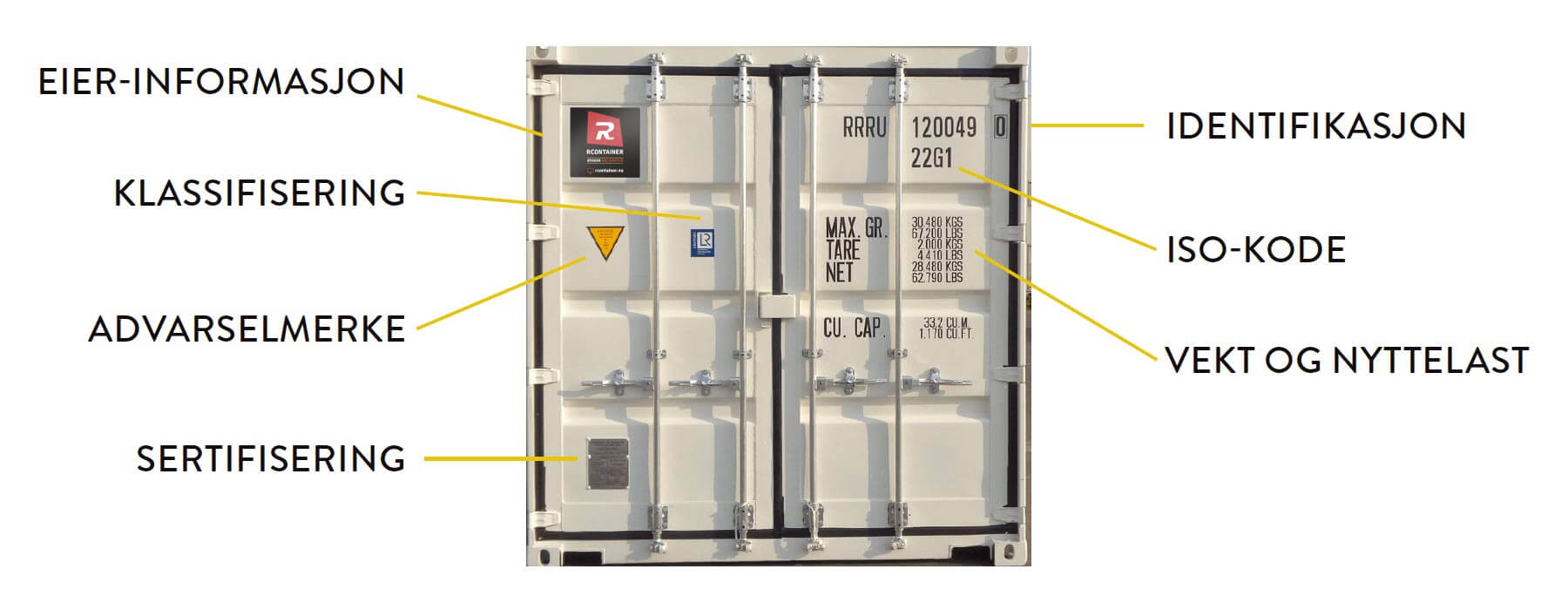Dersom du har hatt noe med en container å gjøre noen gang, har du mest sannsynlig lagt merke til at det er festet diverse markeringer, klistrelapper og skilt på container-døren. Men hvorfor er de der og hva betyr de egentlig for noe? Det får du svar på her!