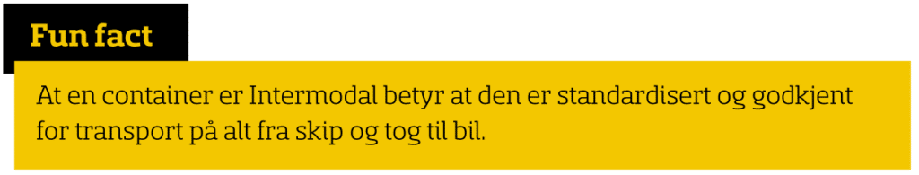 Funfact: 20 fots containere blir på fagspråket ofte kalt for “TEU”. TEU betyr Twenty-foot equivalent unit, og en 40 fots container blir dermed “to TAU”.