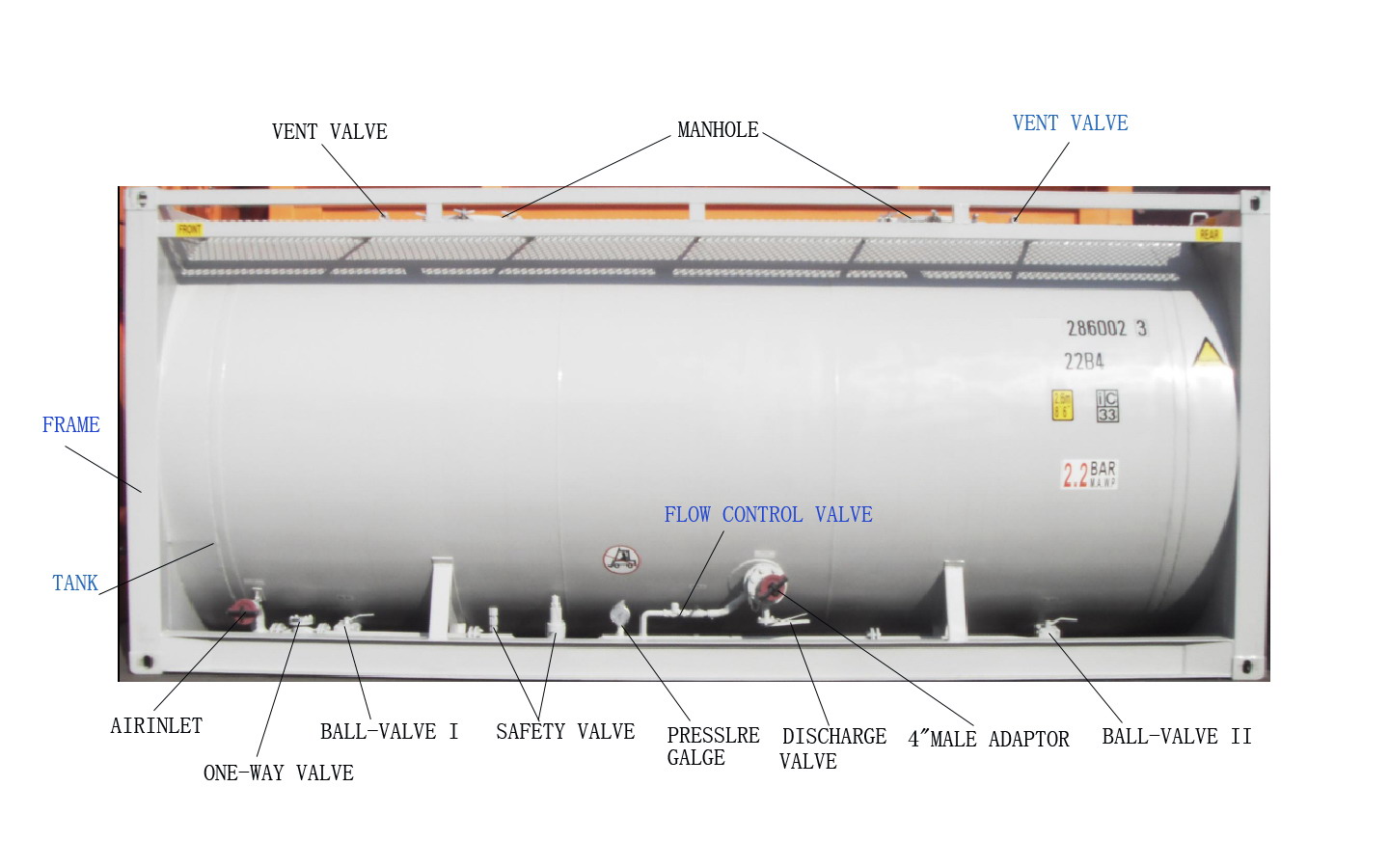 20 ft ISO tank iht. T11 med hele 25 000 L kapasitet. Anvendelig container som også er CSC-godkjent for internasjonal transport og er et meget robust produkt.