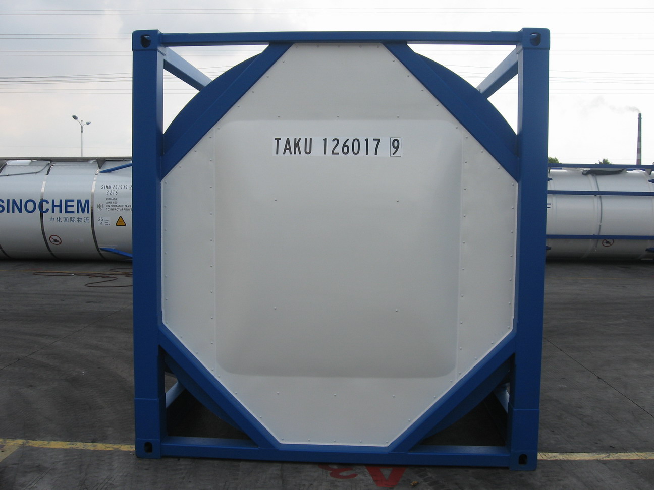 20 ft UN tank container iht. T11 som kan transporteres på båt, tog, trailer og i cargo fly. T11 tankene er godkjent iht. de høyeste standardene innen internasjonal transport for sikkerhet. Kan lagre div. vesker som krever en temperatur fra -40 til +65 med en arbeidende trykk på 4 bar. Container rammen har en ekstrem sterk struktur og tåler over 180 tonn på containerens hjørner, 25 000 liter innvendig kapasitet. Dette gjør at containeren trenger kun og stå på 4 punkter. RCONTAINER® bygger også om containere til alle formål.